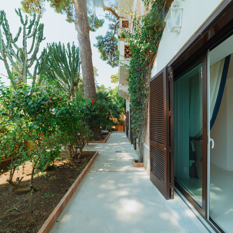 A refined haven of privacy and style, the Corallo Suite offers 55 square meters of thoughtfully designed comfort. Featuring a king-size bed, private bathroom, fully equipped kitchen, and exclusive access to a lush private garden, this suite is ideal for couples seeking tranquility and space. The interiors blend Mediterranean charm with contemporary elegance, while the […]